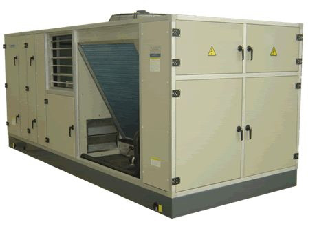 屋頂式空調(diào)機(jī)組為全空氣系統(tǒng),是集制冷、制熱、恒溫恒濕、空氣凈化等功能于一體的大中型空調(diào)設(shè)備。該型屋頂機(jī)系列產(chǎn)品集成了直膨組合式空調(diào)與風(fēng)冷熱泵技術(shù),實現(xiàn)了制冷與空氣調(diào)節(jié)集中式綜合控制等優(yōu)點(diǎn),具有高效節(jié)能、系統(tǒng)簡單、性能穩(wěn)定等特點(diǎn),完美的微電腦控制使得空氣性能與品質(zhì)得到了最佳的控制;機(jī)組的壓縮冷凝段采用板塊拼裝的方式,空氣處理段各功能段采用鋁合金框架與高壓發(fā)泡雙壁結(jié)構(gòu),具有技術(shù)成熟、設(shè)計靈活、功能段組合多樣、安裝簡便、易于控制等特點(diǎn)。