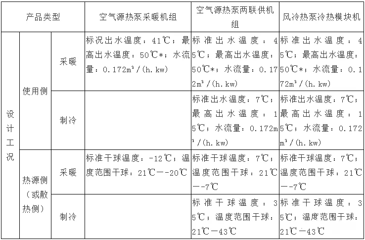 其實(shí),對于空氣源熱泵兩聯(lián)供機(jī)組來說現(xiàn)在市場上一般會(huì)按使用區(qū)域不同分為低溫機(jī)和常溫機(jī),低溫機(jī)也參照GB/T25127.1或GB/T25127.2常溫機(jī)參照表中所列。