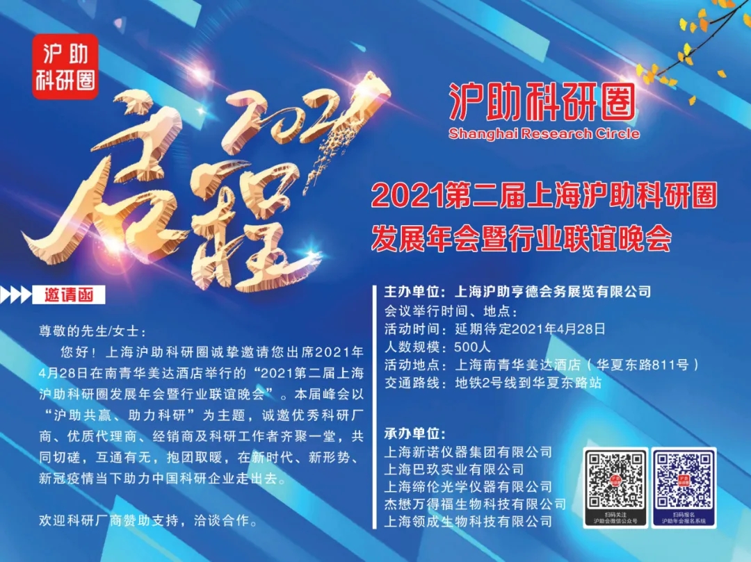 2021第二屆上海滬助科研圈發展年會暨行業聯誼晚會定于2021428日在上海南青華美達酒店舉行本屆峰會以“滬助共贏、助力科研”為主題,邀請了優秀的科研廠商、優質代理商、經銷商及科研工作者齊聚一堂,共同切磋,互通有無,在新時代、新形勢、疫情當下助力中國科研企業走出去...