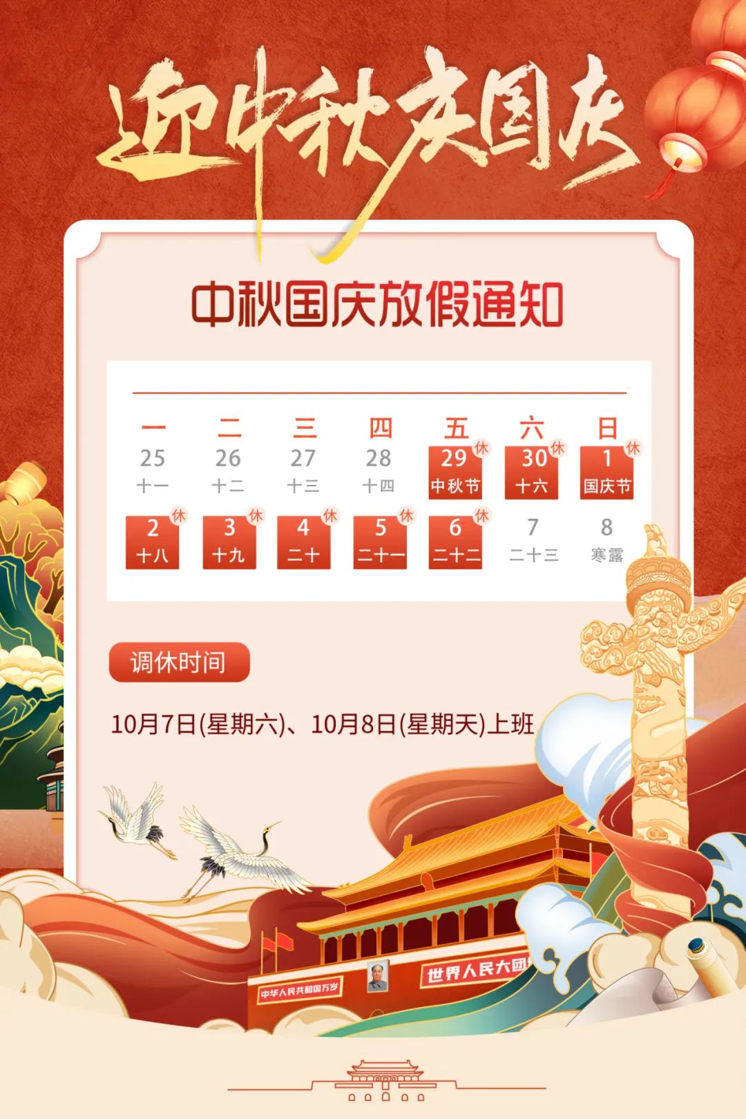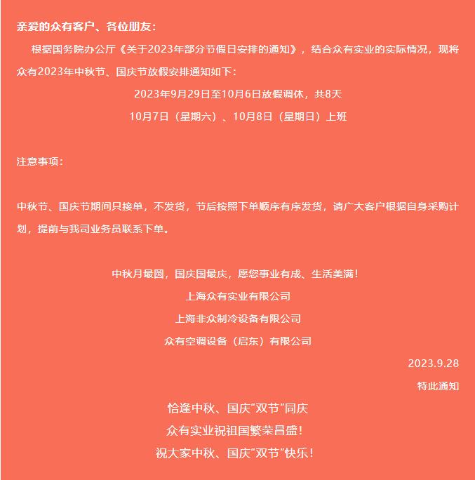 通知:2023年中秋、國慶“雙節”放假安排