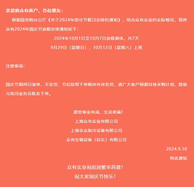 通知:2024年國慶節(jié)放假安排!