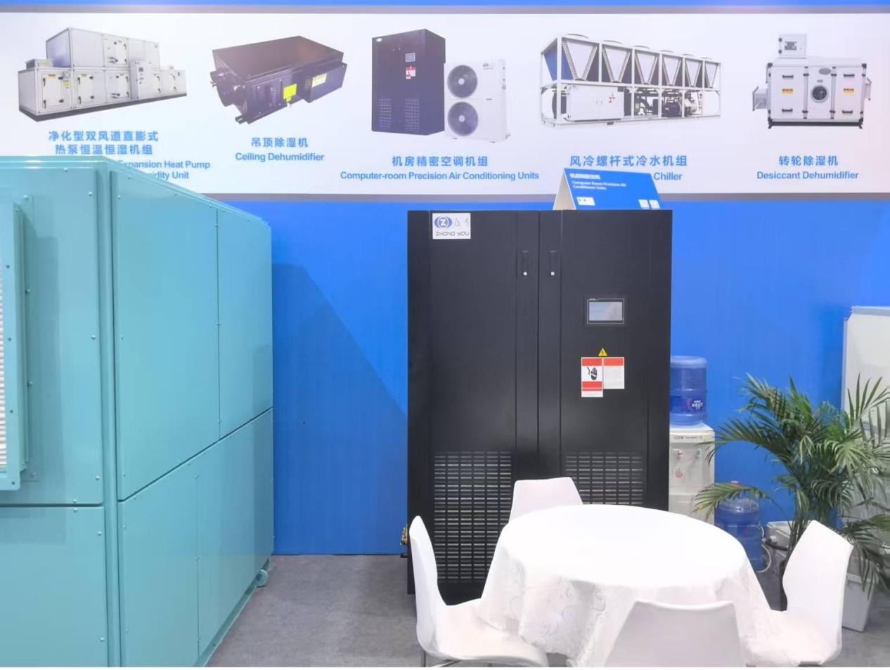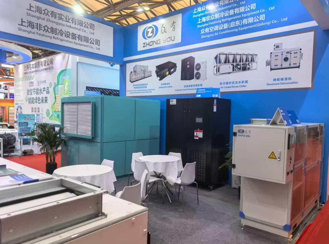 本次展覽中,眾有實業展示了多款創新產品,參展的產品線豐富多樣,涵蓋了工業除濕機、機房精密空調機組、船用水冷調溫型除濕空調機組、凈化型直膨式變頻恒溫恒濕機組以及恒濕機(除濕加濕一體機)等多種設備。這些產品不僅在設計上體現了現代工業美學,更在性能上實現了高效節能和低碳環保的結合,充分展現了公司在制冷領域的強大研發實力和創新能力。