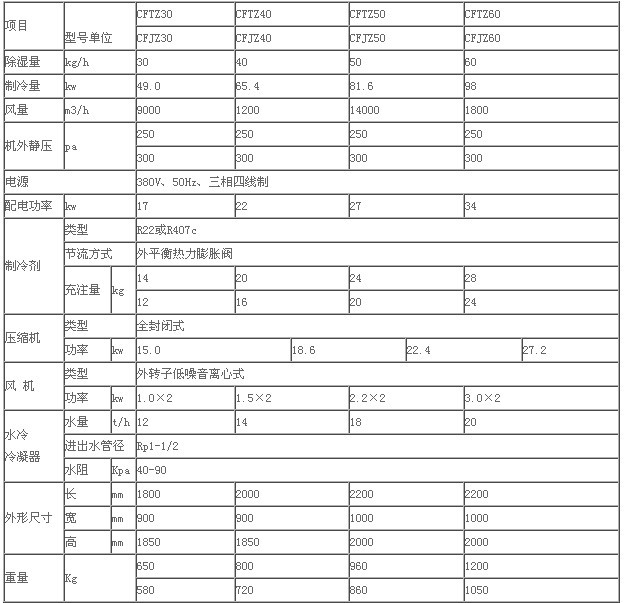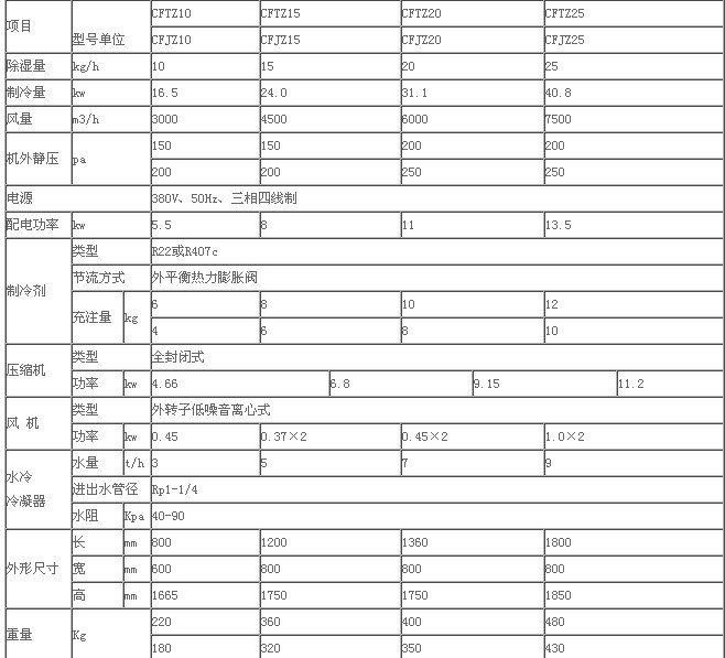 水冷調(diào)溫、降溫型常規(guī)除濕機(jī)技術(shù)指標(biāo)<2>