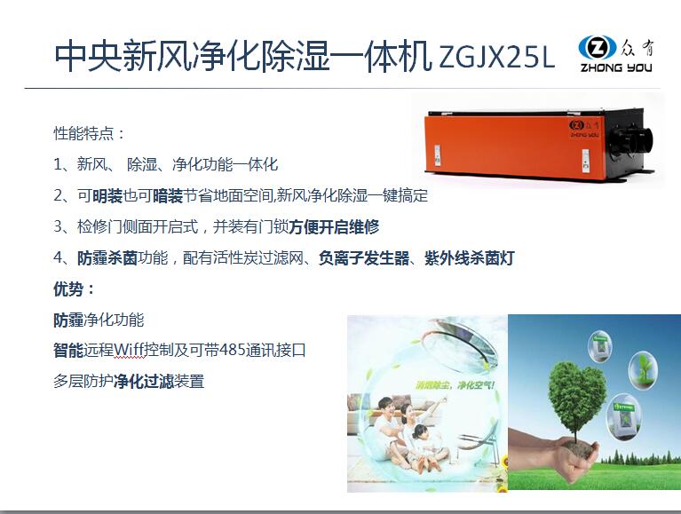 1、新風(fēng)、 除濕、凈化功能一體化