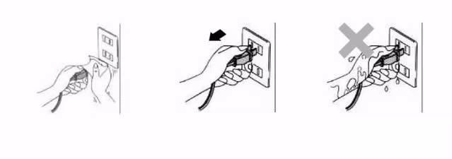 插電時,將電源插頭清理干凈。清理除濕機時,要先將電源關掉。長時間不使用時,也要將電源關掉。在拔電源時,不要拉動電源線來拔掉插頭。手濕時不要插插頭。不要用拔電和插電來控制除濕機的開始及停止。 在移動除濕機時,也應小心不要壓壞電線。